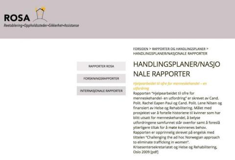 ROSA står for Reetablering, Oppholdstillatelse, Sikkerhet og Assistanse. Prosjektet ble opprettet i 2005 etter søknad fra Krisesentersekretariatet i forbindelse med regjeringens handlingsplan mot handel med kvinner og barn (2003-2005). På denne nettsiden finner du blant annet lenker til sentrale handlingsplaner knyttet til menneskehandel.